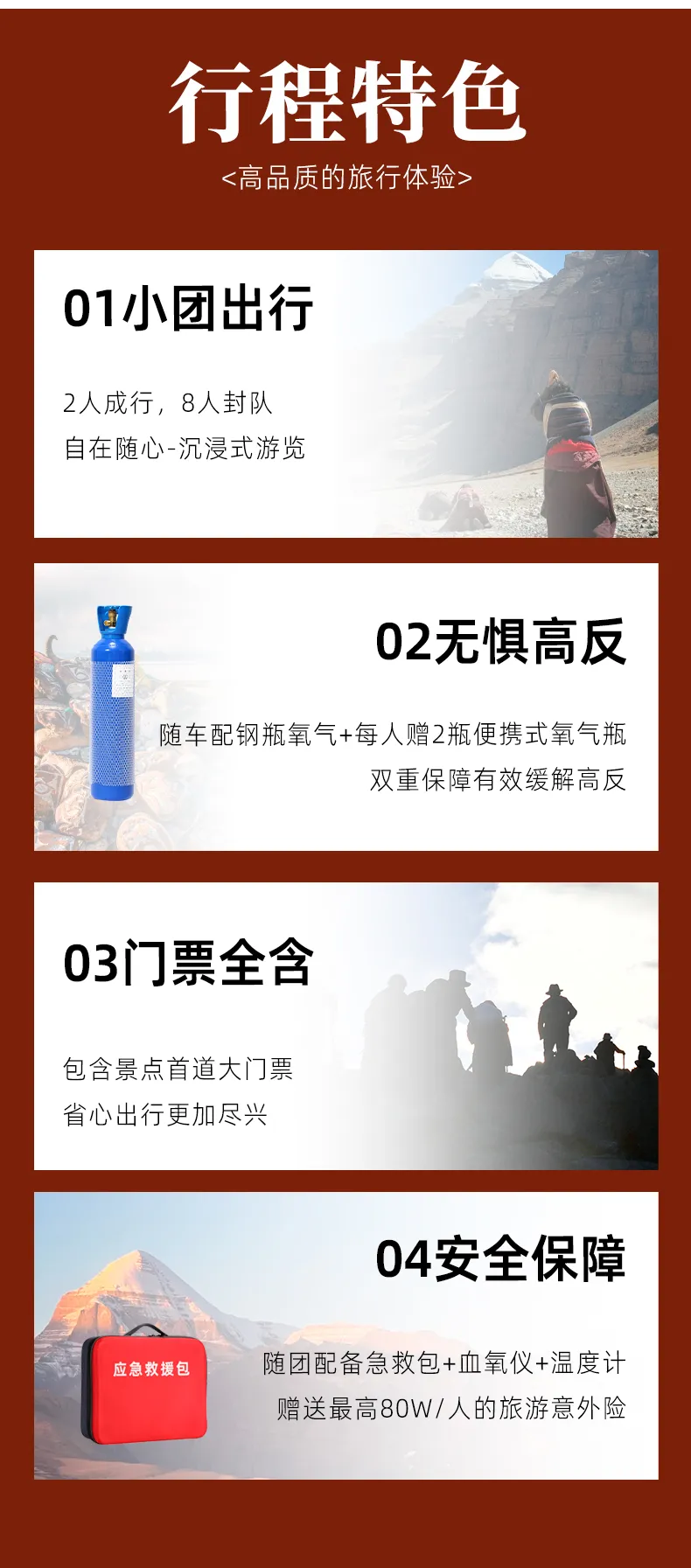 11.高原反应:尽量提前到拉萨适应,放松身心,不要有心理负担,饮食节制,多喝水多吃水果蔬菜,一切动作减缓,以便快速适应高原环境。如中途发生严重高反,在吸氧、挂点滴等治疗措施仍然无效的情况下,领队有权停止该队员活动,送回至拉萨治疗。