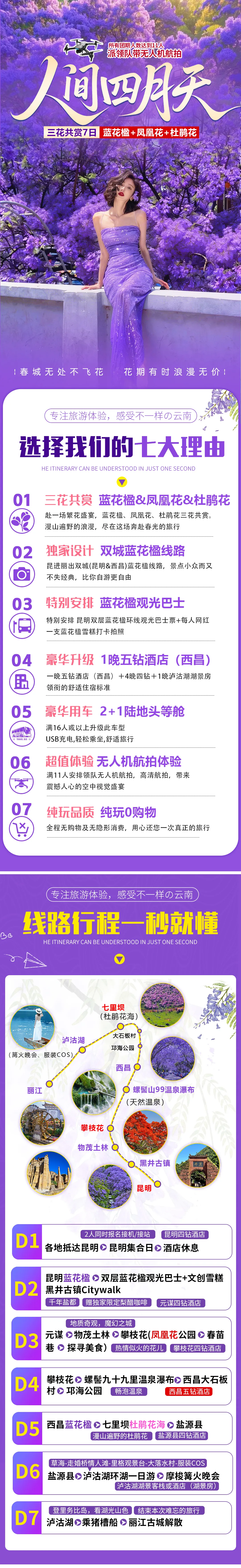 【双城蓝花楹】 昆明&西昌双城蓝花楹、元谋土林、黑井古镇、攀枝花凤凰花、邛海公园、大石板村、99里温泉瀑布、七里坝杜鹃花海、风情泸沽湖7日深度之旅 跟团游