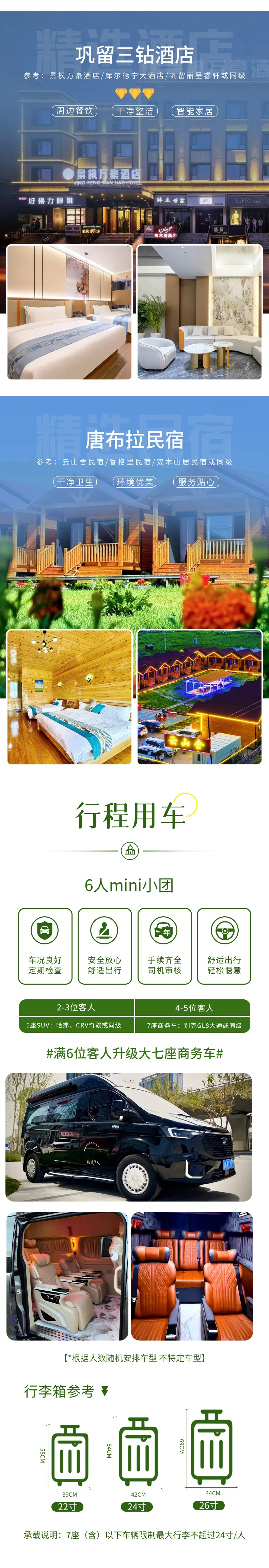 【行李说明】小车行李厢有限,每人限带1个22吋行李箱,2人合用不超过24吋,超限会影响乘车体验!