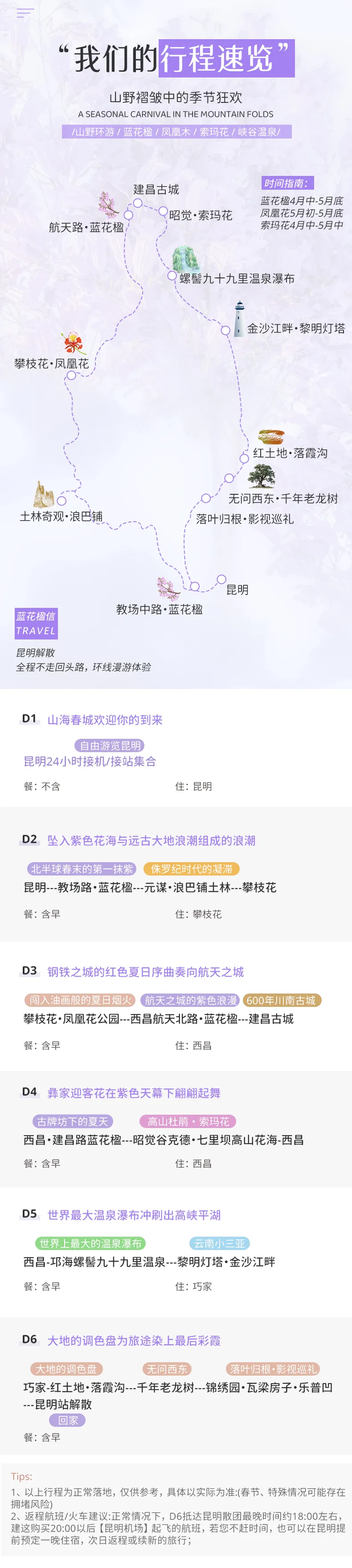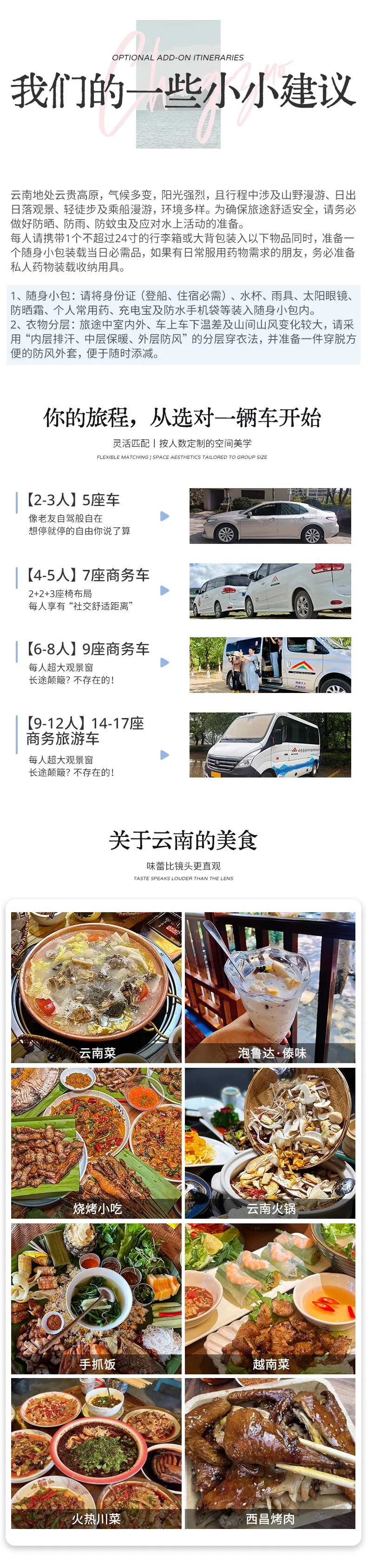 3. 城市间路途较远,景点较分散,故乘车时间较长,请备好晕车药,夏季温差大,自备常用晕车药等药品,避免生病中暑。