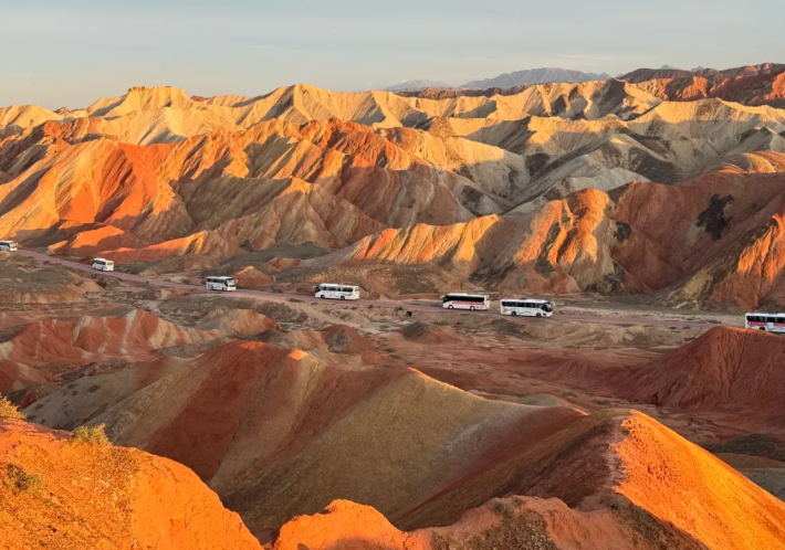 · 下午 (14:00-17:00):午餐后驱车前往张掖【七彩丹霞】景区(车程约3小时)。