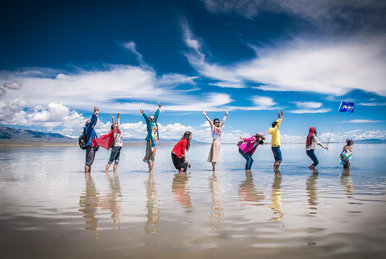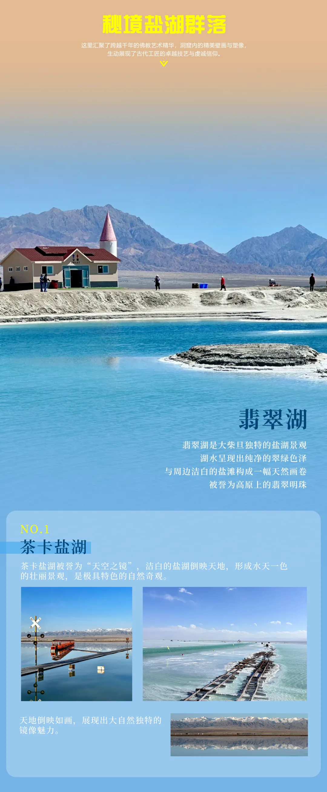 · 亮点:中国最大的盐湖,是翡翠湖的几千倍大。著名的“万丈盐桥”从中穿过,湖水呈现出极致的蒂芙尼蓝和翡翠绿。