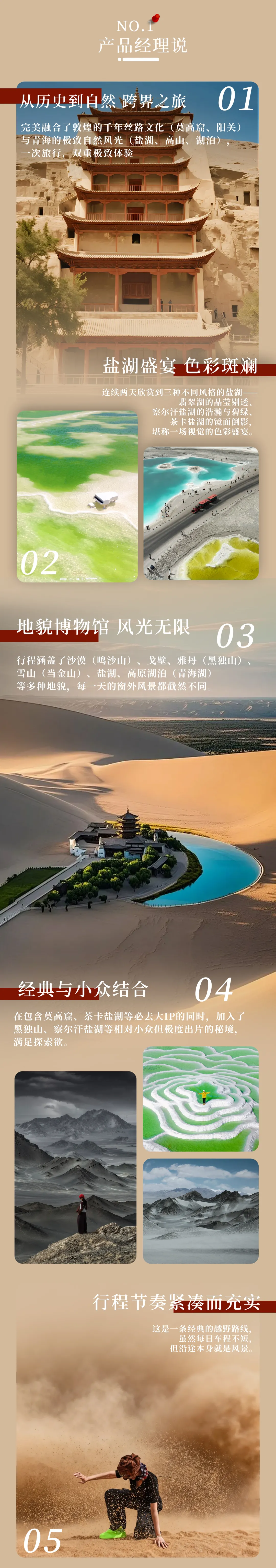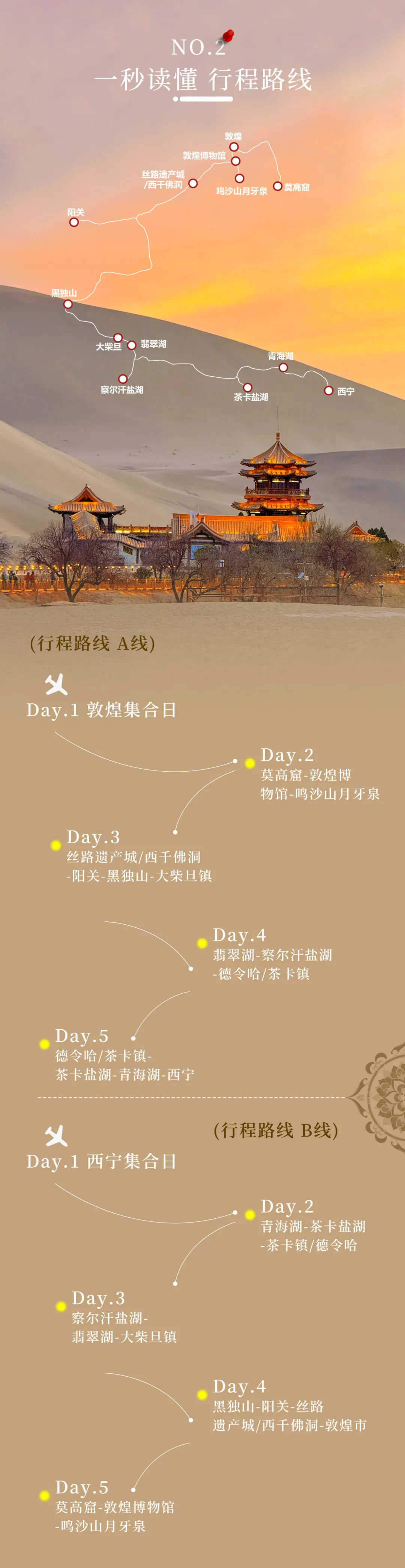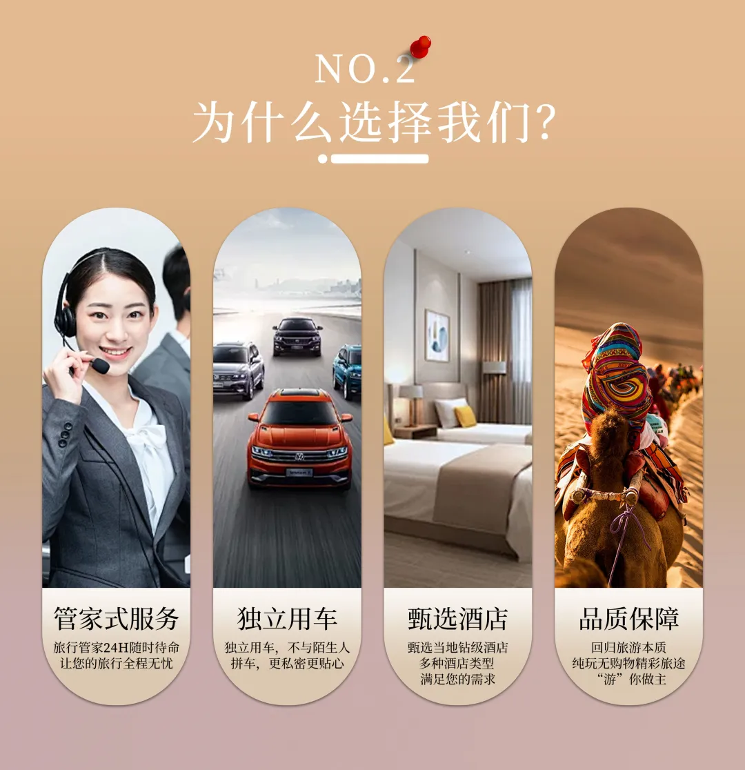 · 活动:骑骆驼、爬鸣沙山、观赏大漠日落和月牙泉华灯初上。