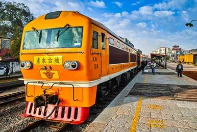 早起前往临安站乘【建水小火车】(线路:临安站-双龙桥-乡会桥-团山站),体验建水独有的复古木质小火车,复古的壁灯、摇头晃脑的老电扇以及沿途站点的法式建筑似是带我们穿越回了二十世初这条铁路刚修通时的时光。沿途以缓慢的速度经过田园、十七孔桥、老站房……