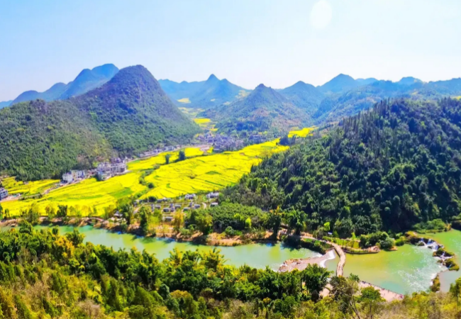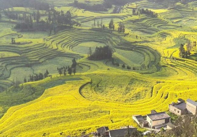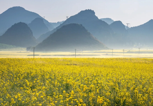 自然醒,随后游览【金鸡峰从】,此处地方比较灵活,大家可以分开游玩摄影,也可以来一组美美的花田服装美照。金鸡峰可以在山头上拍摄,山不高,天气好可以拍摄到耶稣光射到云雾中若隐若现的油菜花以及金鸡峰群中。