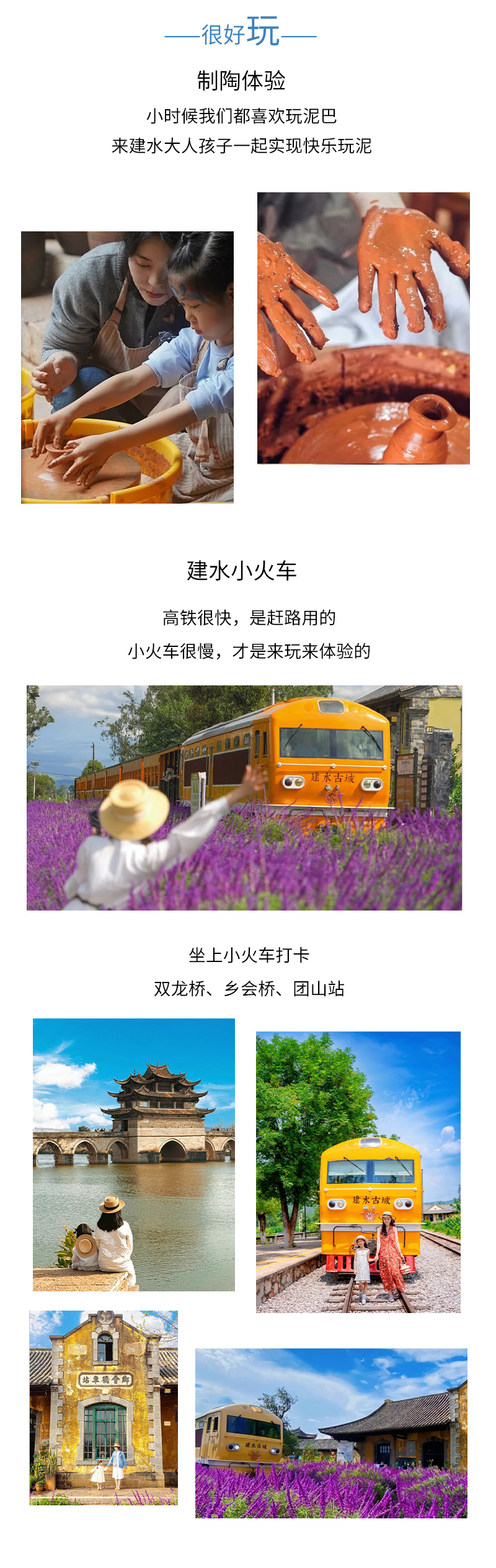 早起前往临安站乘【建水小火车】(线路:临安站-双龙桥-乡会桥-团山站),体验建水独有的复古木质小火车,复古的壁灯、摇头晃脑的老电扇以及沿途站点的法式建筑似是带我们穿越回了二十世初这条铁路刚修通时的时光。