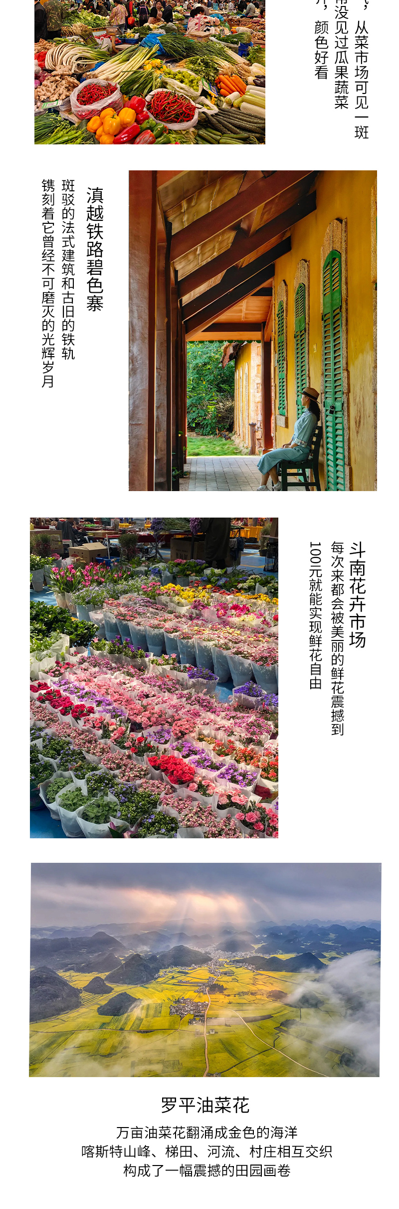 早晨在酒店自然醒,趁着晨光出发前往集合出发,素有 “小巴黎”之称的【滇越铁路-碧色寨】。这里是冯小刚导演电影《芳华》的拍摄地,斑驳的法式建筑和古旧的铁轨,镌刻着它曾经不可磨灭的光辉岁月,现在是摄影师和画家最喜欢去的取景地点。 下午出发前往元阳,沿途会看见琳琅满目的热带水果摊,以及正在收割的芭蕉林,大家可以适当休息,品尝下热带水果的美味。