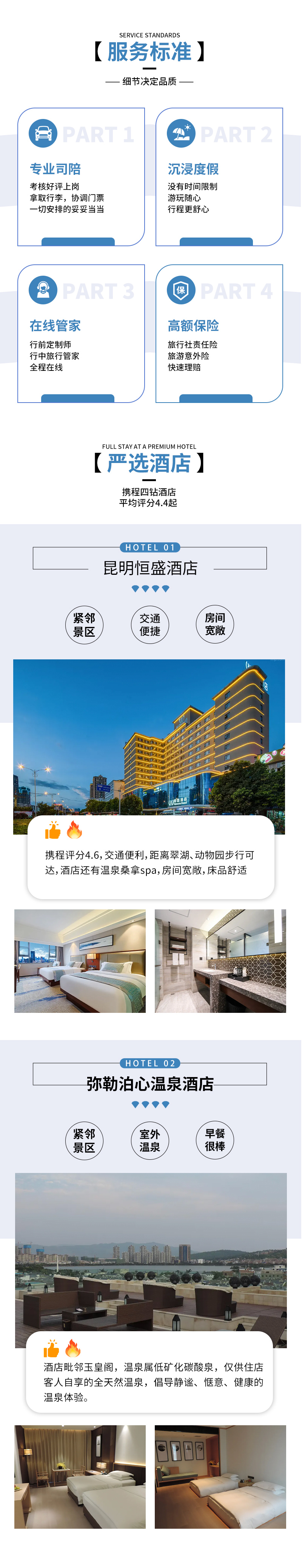 11月开始海埂大坝成千上万只海鸥翱翔的天空蔚为壮观。还可以去翠湖公园去看看,去南屏步行街,去品尝当地最特色的各类汽锅鸡或过桥米线,全天酒店大家都可以办理入住。
