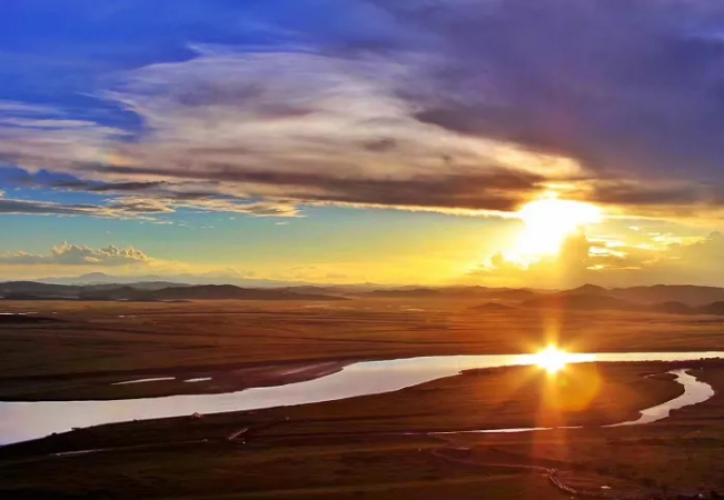 午后抵达郎木寺,红墙金顶下经筒轻转,酥油香与诵经声交织成静谧的维度。待到日头西斜,黄河九曲第一湾正铺开她最壮丽的画卷——河水如金鳞巨蟒蜿蜒于草原,晚霞将天际烧成渐变的绸缎。之前抵达【九曲黄河第一湾】,前往观景台,俯拍黄河日落,“落霞与孤鹜齐飞,秋水共长天一色”的韵味在此被完美展示出来。夕阳西下后,前往入住酒店;