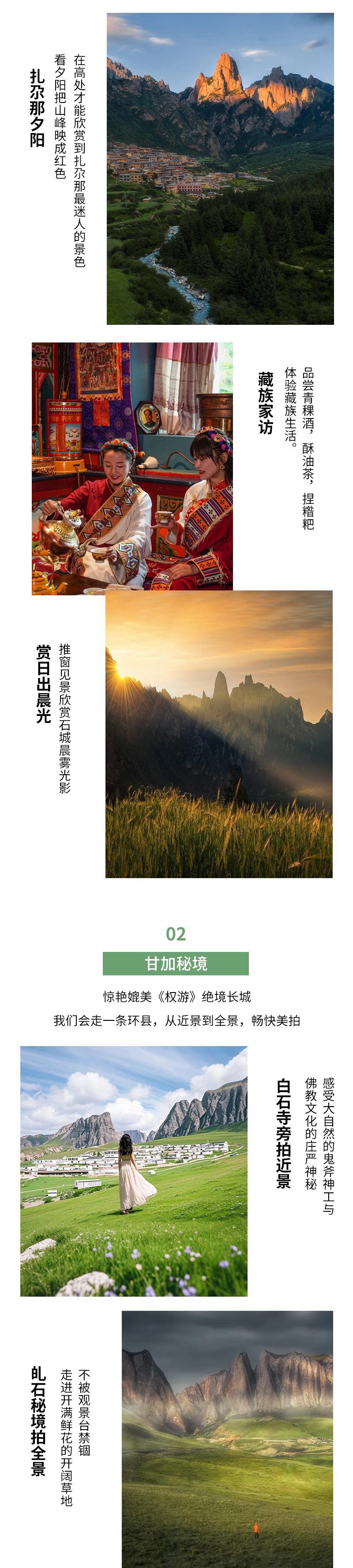 迎着晨光穿越【洛克之路】。在蜿蜒天际的景观长廊中感受亿万年地质奇观。抵达被石城环绕的扎尕那,藏寨炊烟与山间晨雾共舞,宛如踏入仙境。