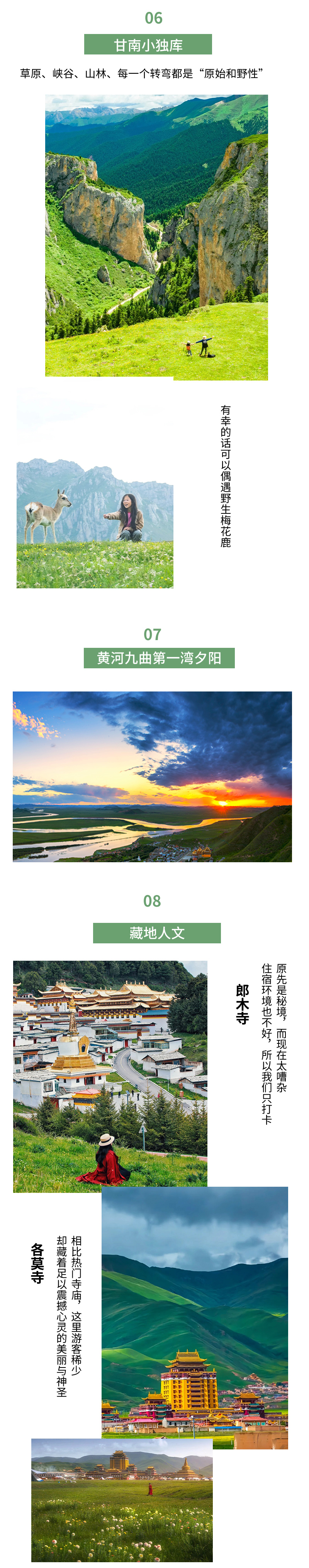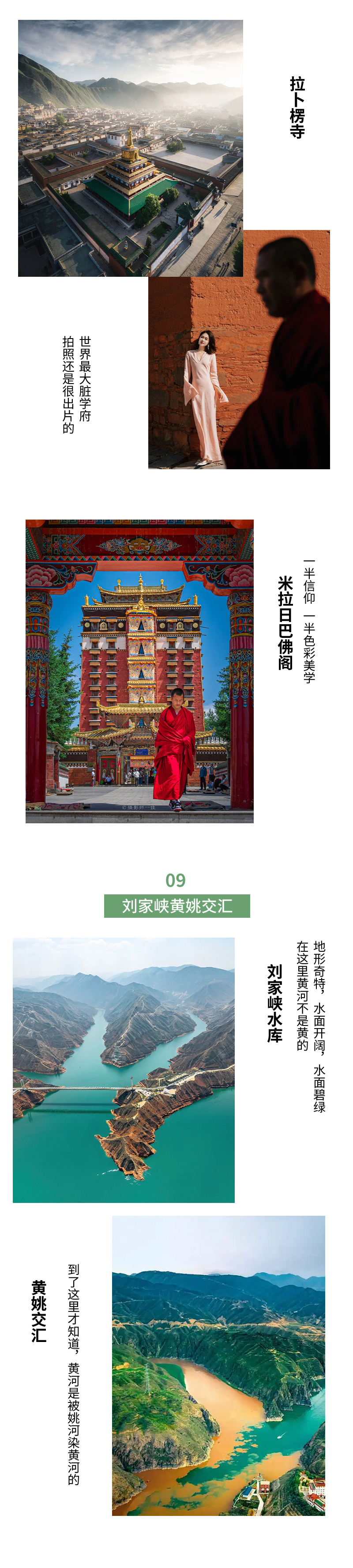 早晨,观赏【扎尕那晨曦】,石城在云雾中渐显轮廓,山尖染上金晖,仿佛众神苏醒的序章。沿“甘南小独库”蜿蜒穿行,车窗掠过峡谷的冷峻与草甸的温柔,每一道弯后都是未曾预料的风景。适时前往【郎木寺】,郎木寺不是寺,是镇名。郎木寺镇被白龙江源头小溪划分为两部分,四川的“安多达仓郎木格尔底寺”和甘肃的“赛赤寺”在这里隔江相望。