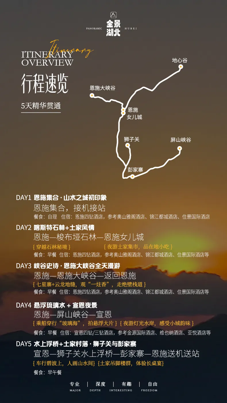 4.恩施昼夜温差比较大,建议晚上备好一件保暖衣物;请提前查好天气并询问旅行管家;