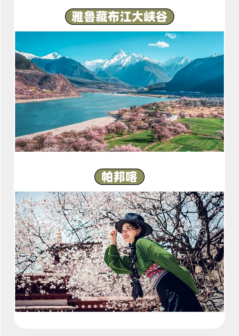 【行程概述】清晨依依不舍告别美丽的索松村,前往拉萨。从“雪山桃花秘境”索松村,到“桃花第一村”嘎啦村,再至“圣城天境”拉萨帕邦卡。拉萨的春天不止于林芝。你可以寻找桃花与千年历史交织的独特画面。【帕邦喀】的古寺桃韵,千年佛法圣地的庄严与春日桃花生命力的碰撞。帕邦喀寺院的红色或白色墙壁,是桃花最完美的背景板。帕邦喀标志性的巨大黄色岩石 + 依石而生的桃树是不可错过的拍摄素材。