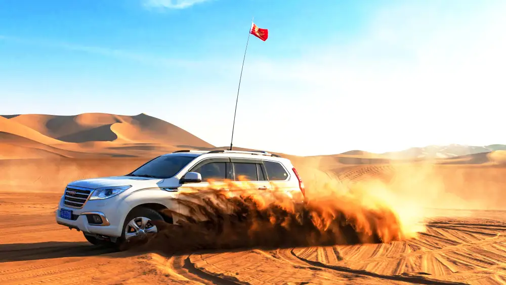 08:00 酒店享用自助早餐后,乘车前往内蒙古阿拉善左旗,换乘沙漠越野车深入浩瀚神秘的腾格里沙漠,去探秘大自然的奥秘(约:200KM,车程:2.5小时)。抵达沙漠边缘后【换乘越野车深入沙漠腹地】(丰田系列越野车,不指定具体车型,每4人一辆越野车,约:50KM,约:2.5小时,含草场维护费)。由沙漠专业司机带领,乘坐专业越野车深入腹地,穿越沙漠湖泊,翻越高低起伏的沙丘,体验速度与激情,在高沙丘可停车体验滑沙,享受最原始的沙漠。