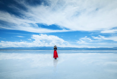 全程最长车程 470 公里,因中途无住宿点实属无奈,夏天可以顺路打卡都兰花海,缓解旅途疲惫。快到傍晚,抵达茶卡盐湖,刚好游人都走了,独享夕阳下的天空之境,晚霞染粉湖面,无人的绝美照片轻松拿捏。