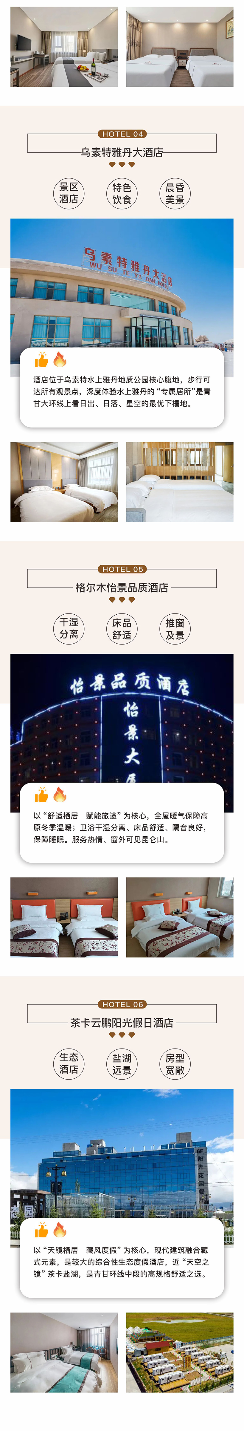今天我们奔赴察尔汗盐湖,中国最大盐湖比茶卡美十倍,碧绿湖面搭配专属美拍造景,天空之镜的纯粹感直接封神。 下午抵达格尔木,来过西北、时间紧张的姐妹,可直接在此散团返回,核心美景已经全部玩好了;没来过西北的人,咱们继续前行。
