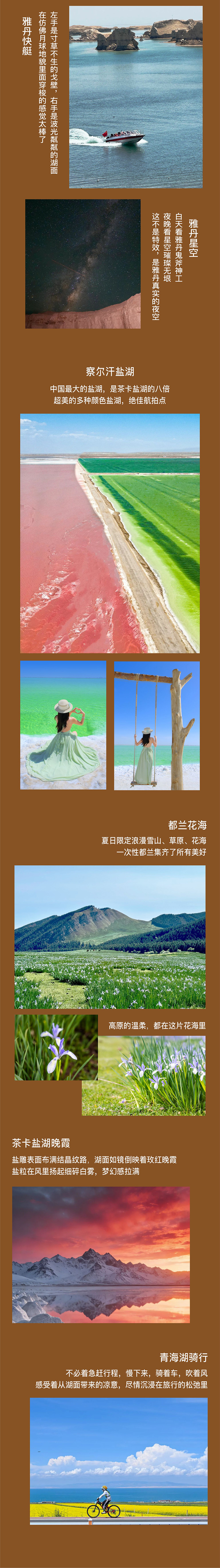 今天300多公里轻松返程,途经青海湖安排湖边骑行,青海湖的风裹着花香,吹起发丝、衣角,沿途观景台随时停车拍照。 下午四五点抵达西宁,送机散团,完美收官。