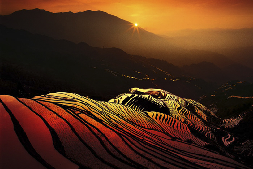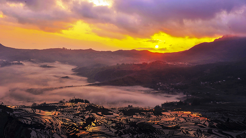 多依树梯田日出 换个角度更加大气