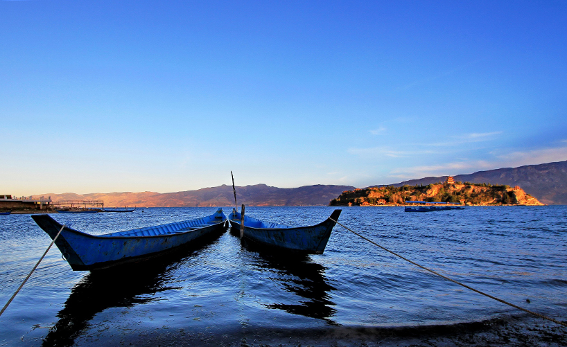 抚仙湖日落,由于湖周围自然环境没有受到大的破坏,至今,抚仙湖仍然是云南省未受到污染的湖泊。诗人们形容为“琉璃万顷”,这是一点也不夸张的。