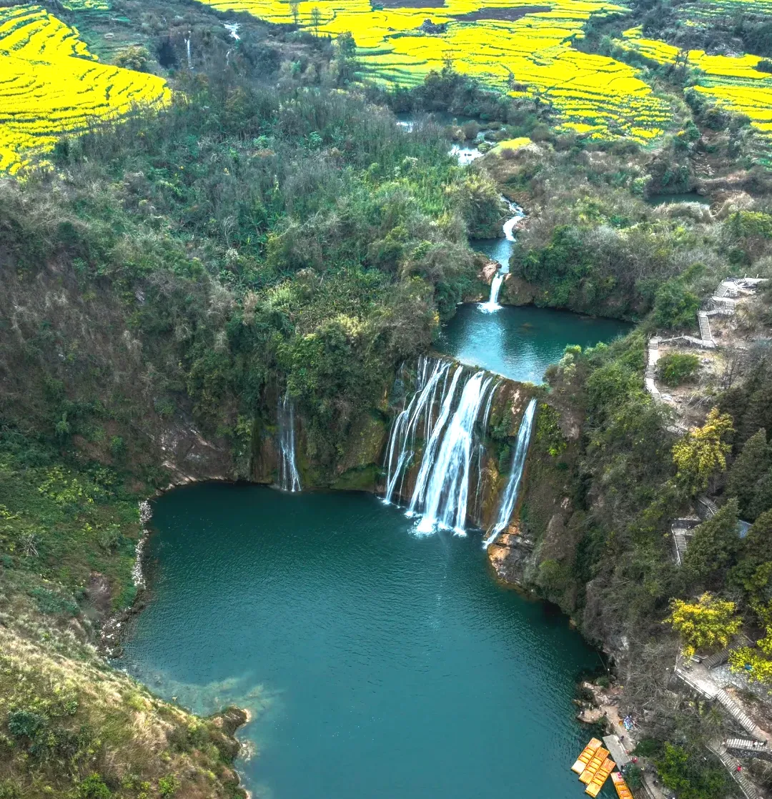 早餐后先出发前往【九龙瀑布景区】,这里是热门影视《庆余年》等拍摄地。是中国六大最美瀑布之一的九龙瀑布群。在约两公里长的河道上有十级瀑布,九龙十瀑之间,以浅滩或深潭相连,形成了一串辉映太阳光芒的明珠彩带。边登高看景边拍照,渴了买根当地出名的水萝卜,汁多美味,清甜润喉,一路到九龙瀑顶端,那里的油菜花也非常好!