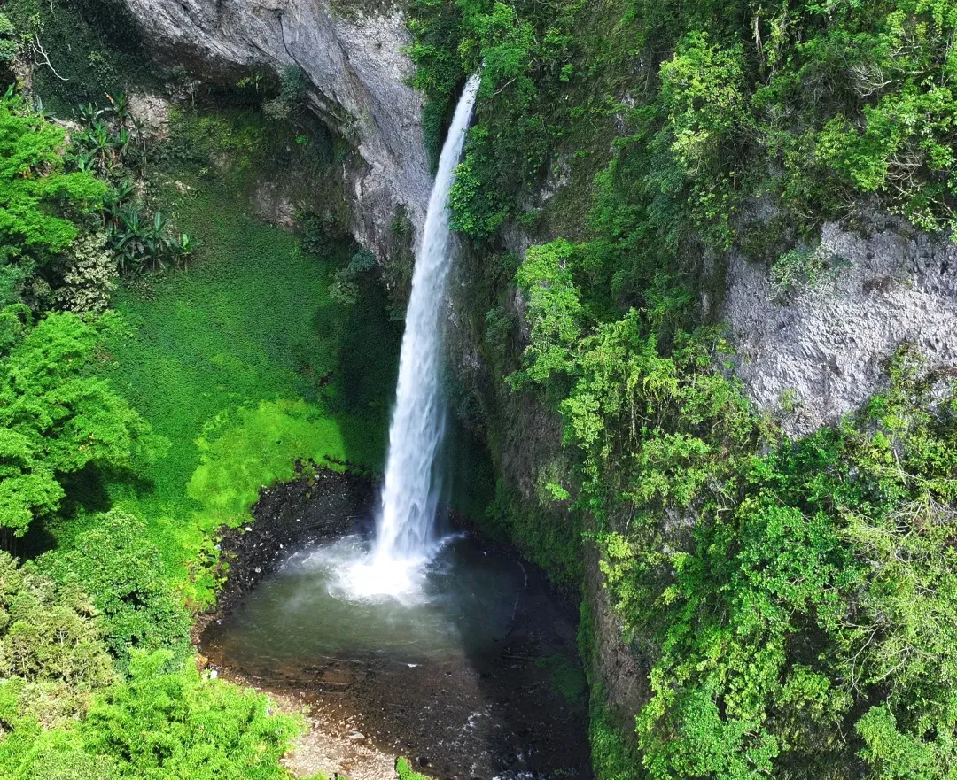 早餐后打卡屏边【牛角寨门】,寨门的设计者灵活地把两者相结合,展现出苗族应有的特色和气派,单从视觉上就能体验到当地的苗族文化。随后到达【滴水层瀑布】观景台,远观瀑布,瀑布从头顶倾泻而下,巨大的水汽带来原始的压迫感,震撼人心。