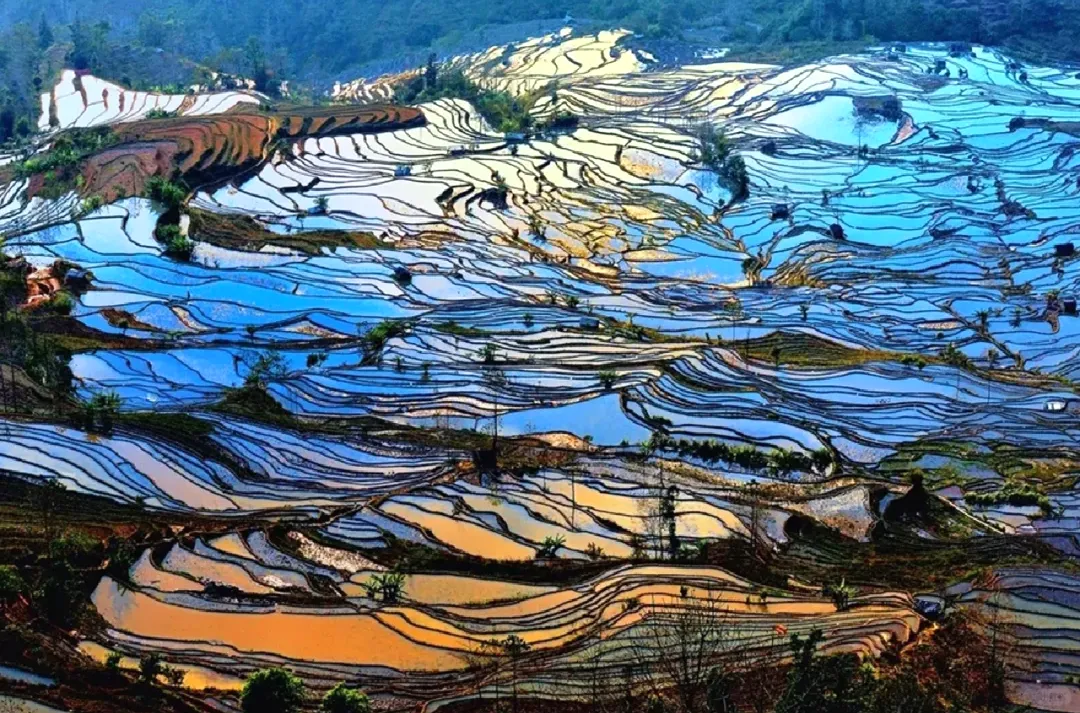 爱春树梯田 湛蓝的天空倒影在盈盈的梯田水面上,美不胜收