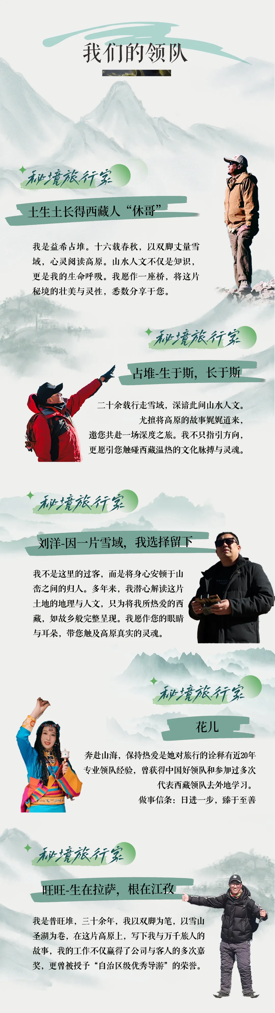 公告:领袖户外的行程安排可能会根据实际突发情况和队员反馈进行调整和优化,但调整不会涉及费用包含的景区、游览天数、集散地点以及住宿标准,最终行程安排以合同内容为准。