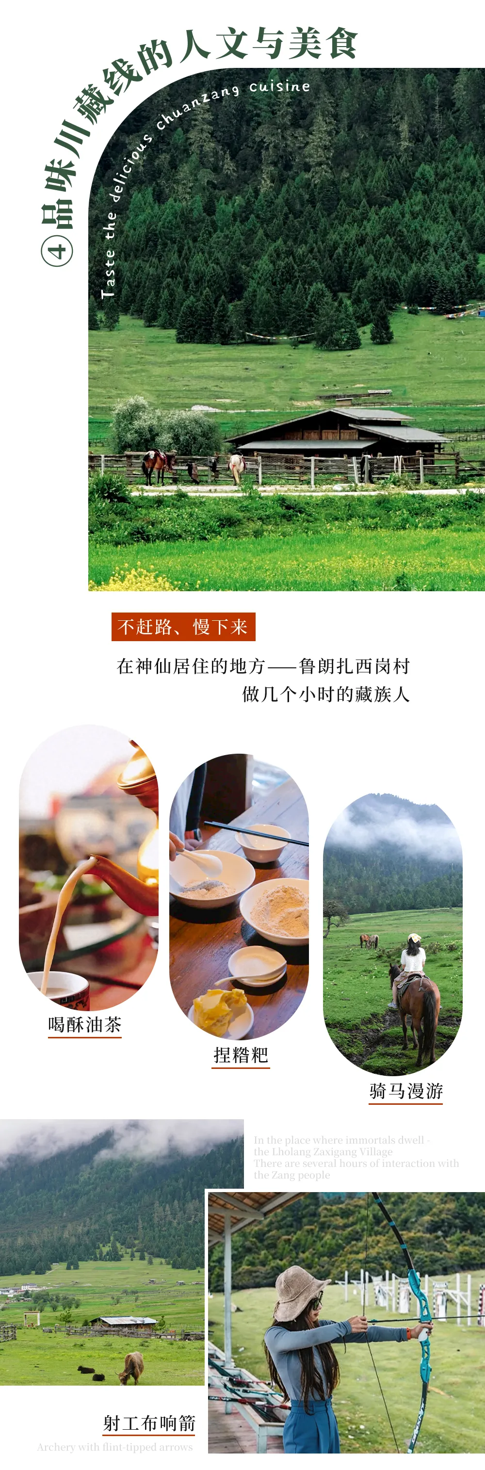 第10天:波密-古乡湖-鲁朗-藏式村落(喝酥油茶+捏糌粑+骑马+射箭)-色季拉山-林芝(已消费,所有费用不退。)
