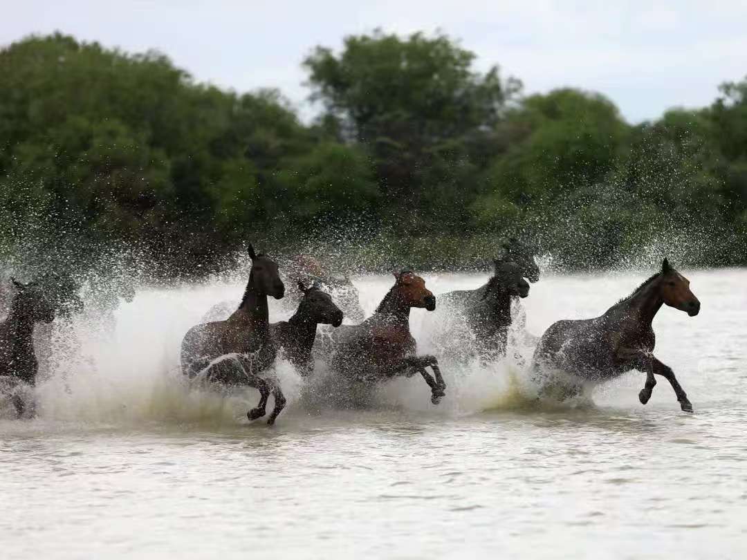 15:00前往【天马浴河】(天马浴河是景区组织的免费观赏活动,有场次安排时间,需要准时赶到观赏地点)。欣赏天马浴河表演,万马奔腾的雄浑与水花飞溅的灵动交织;新疆天马浴河是以伊犁马群在特克斯河中奔腾为核心的自然与人文结合的景观表演,展现了昭苏“天马之乡”的独特魅力。