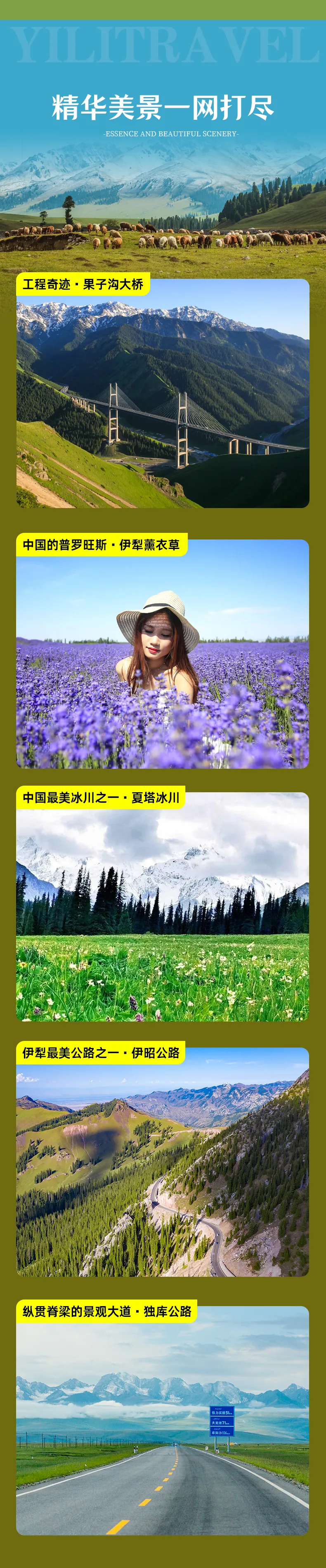 11:30 抵达【伊犁薰衣草】(预计薰衣草花期6月10日-6月30日,以实际花期为准,不在花期取消参观提前出发前往伊宁) 每年6月伊犁薰衣草盛开,这里的薰衣草以“紫、香、愈”为灵魂,串联视觉震撼、嗅觉记忆与心灵疗愈,将薰衣草田塑造成逃离喧嚣的乌托邦,“东方普罗旺斯”的异域风情与天然治愈力,唤醒都市人对慢生活的渴望。