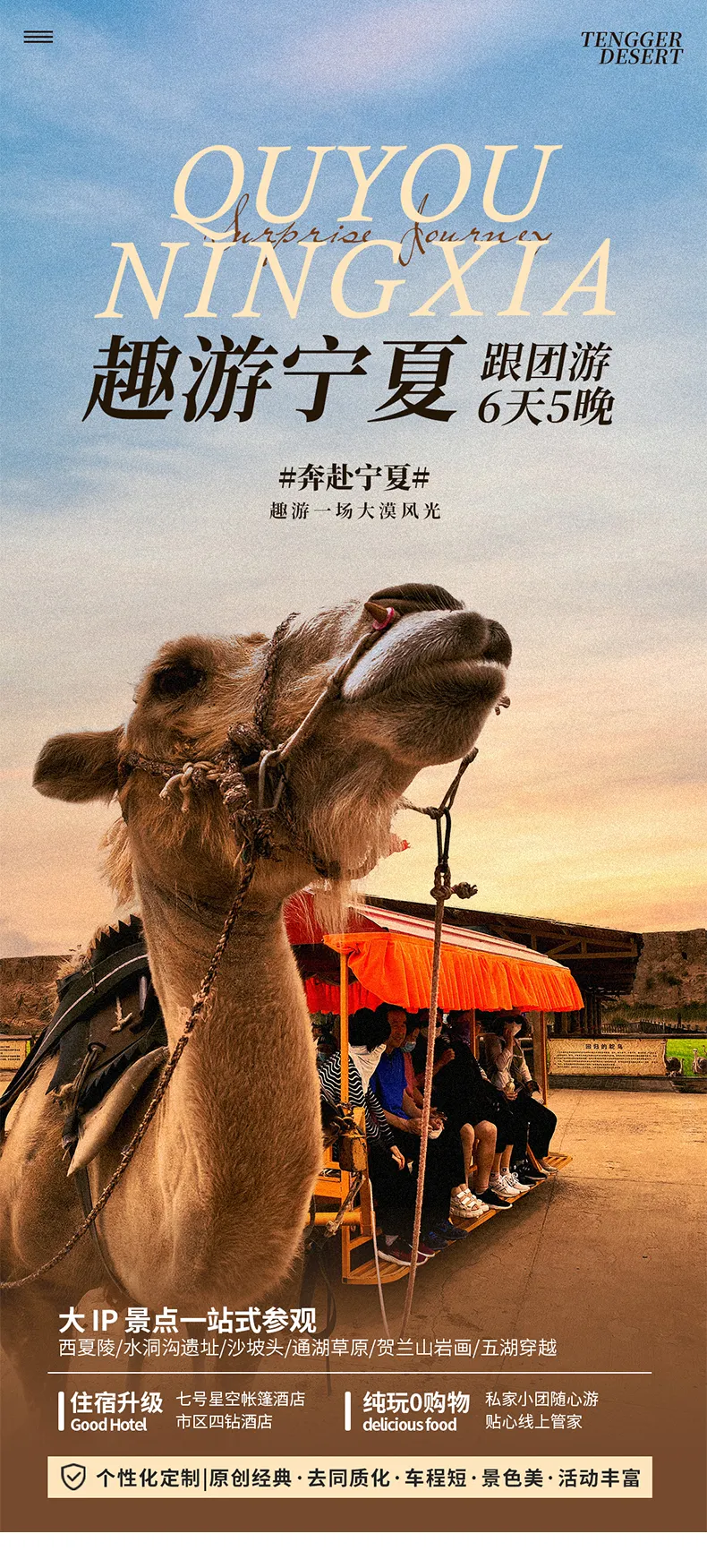 1.骑骆驼漫游沙漠是来宁游客体验神奇经历的理想选择,游客在参加沙漠骑骆驼时,要防止骆驼站起来或卧倒时将人摔下,在这时要抱紧驼鞍或驼峰。骑骆驼时不要绷着劲,应随着骆驼的步自然骑坐摆动,适时调整坐姿。不要打伞,不要穿着艳丽的衣服在骆驼前面,听从导游,驼工的调配。