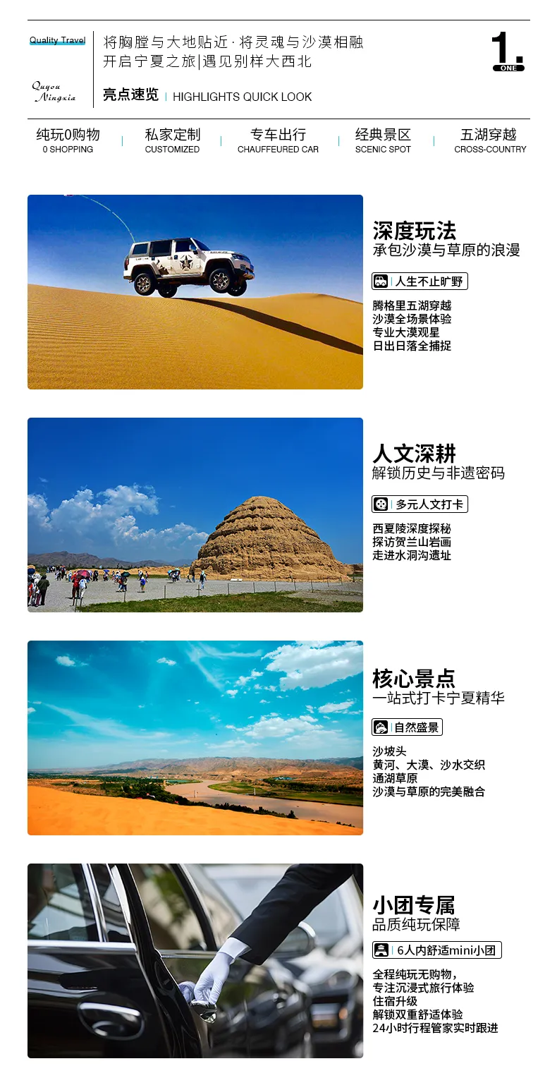 ●西北地区旅游属发展阶段,硬件条件有限,酒店标准、用餐口味与沿海发达城市有差距,不可相提并论,请您做好相应的心里准备。