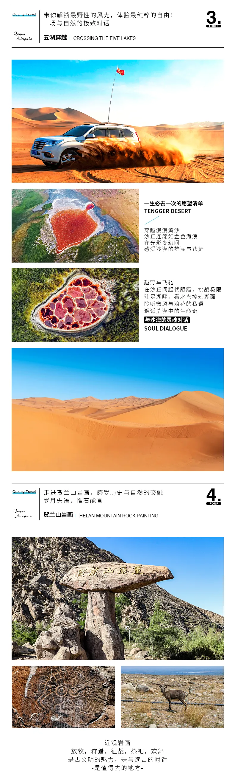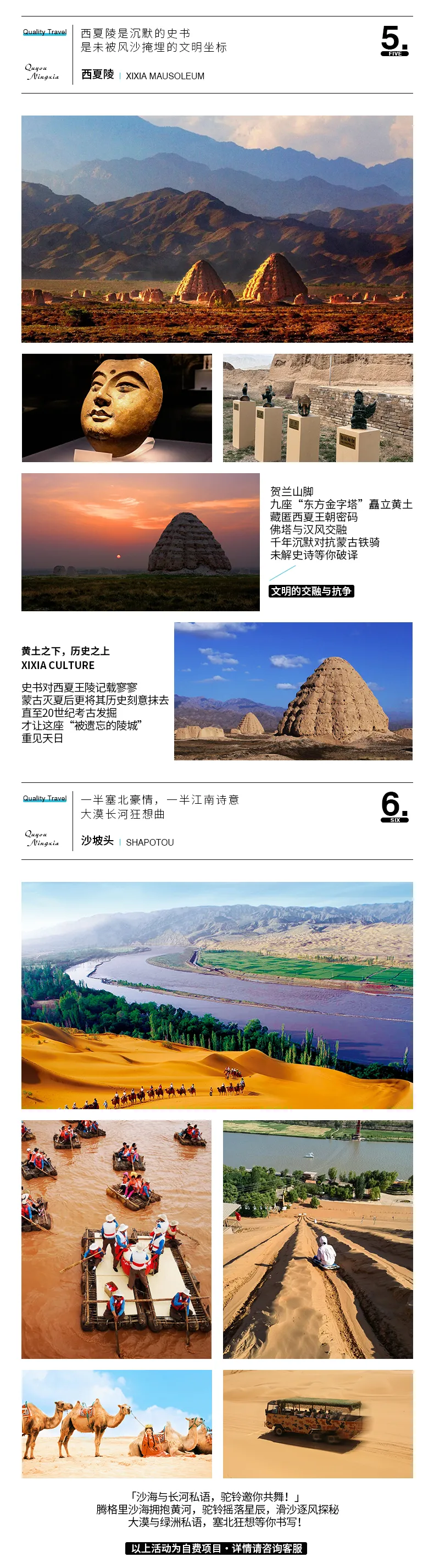 5.切莫单独行动,我们可以为您提供骆驼、向导等全部特种旅游服务。在沙漠中要注意环保,尽量把、垃圾带出沙漠,至少就地掩埋。