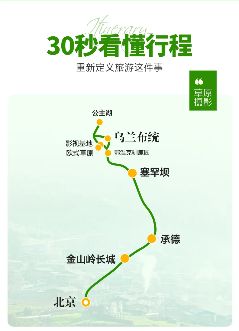 【坝上经典草原】 北京-越野车穿越-乌兰布统-公主湖-鄂温克驯鹿园-金山岭长城5日游 跟团游