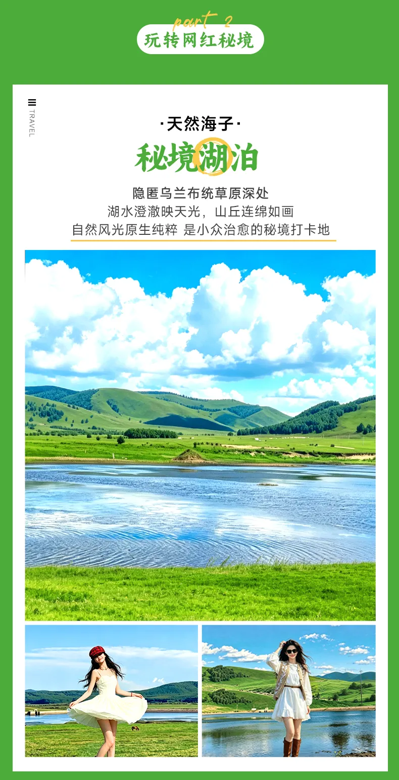 【越野穿越】,一路翻山越岭,穿梭在林海、草原、湖泊、湿地之间,解锁不重样的塞外盛景,沉浸式感受草原的原始与壮阔。