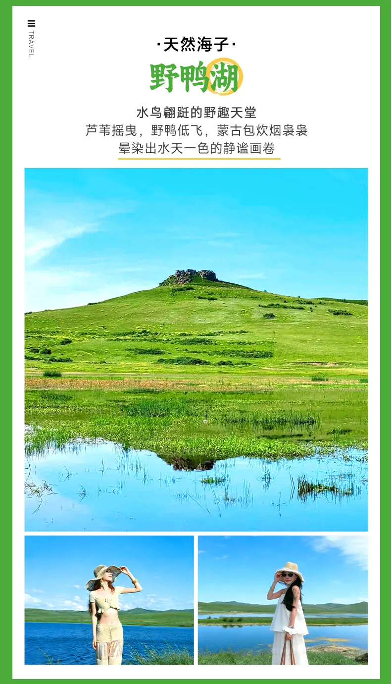 【野鸭湖】草原上的蓝宝石,湖水澄澈见底,湖边草色青青,野鸭、水鸟悠然栖息,越野车停靠湖畔,吹着草原清风,邂逅水天一色的诗意。