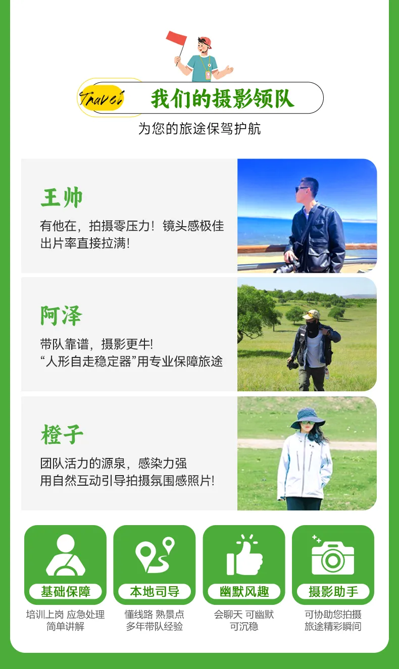 公告:领袖户外的行程安排可能会根据实际突发情况和队员反馈进行调整和优化,但调整不会涉及费用包含的景区、游览天数、集散地点以及住宿标准,最终行程安排以合同内容为准。