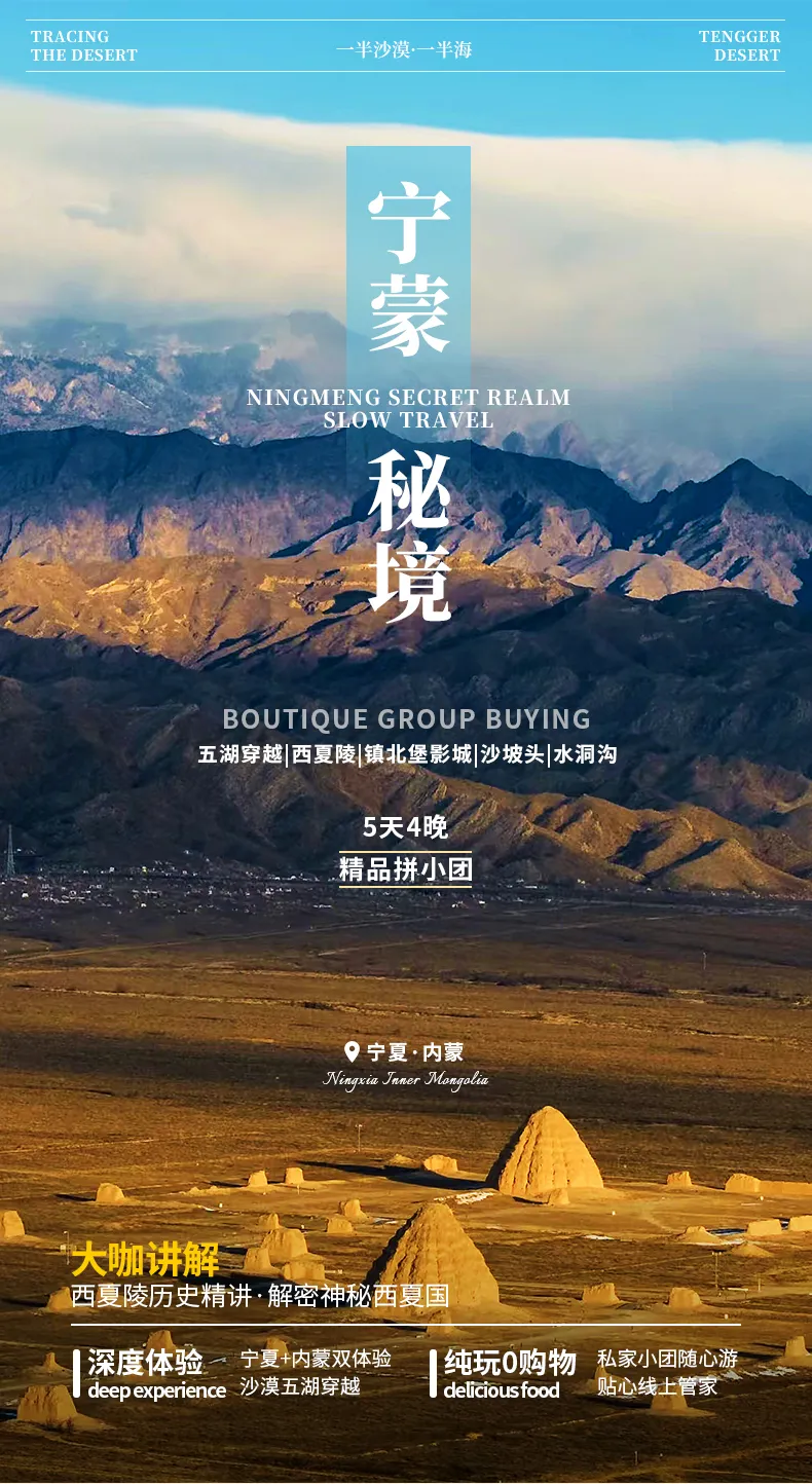 【宁蒙秘境】 西夏陵 -镇北堡-沙坡头-水洞沟-览山公园 5日游 拼车小团