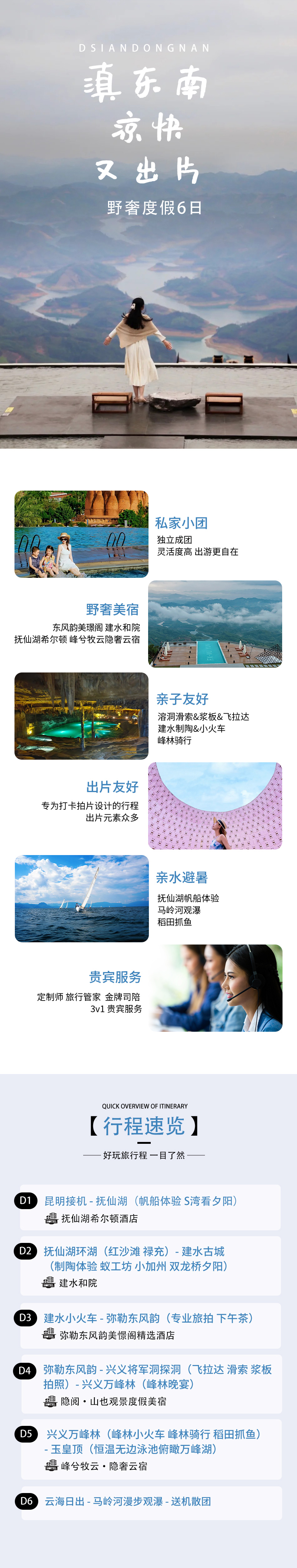 【滇东南-野奢】 抚仙湖-红海滩-禄充风景区-建水古城-蚁工坊-小加州-双龙桥-弥勒东风韵-将军洞-万峰林-玉皇顶-马岭河大峡谷6天5晚 野奢度假