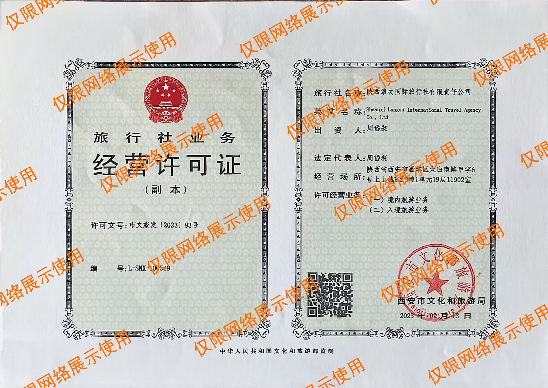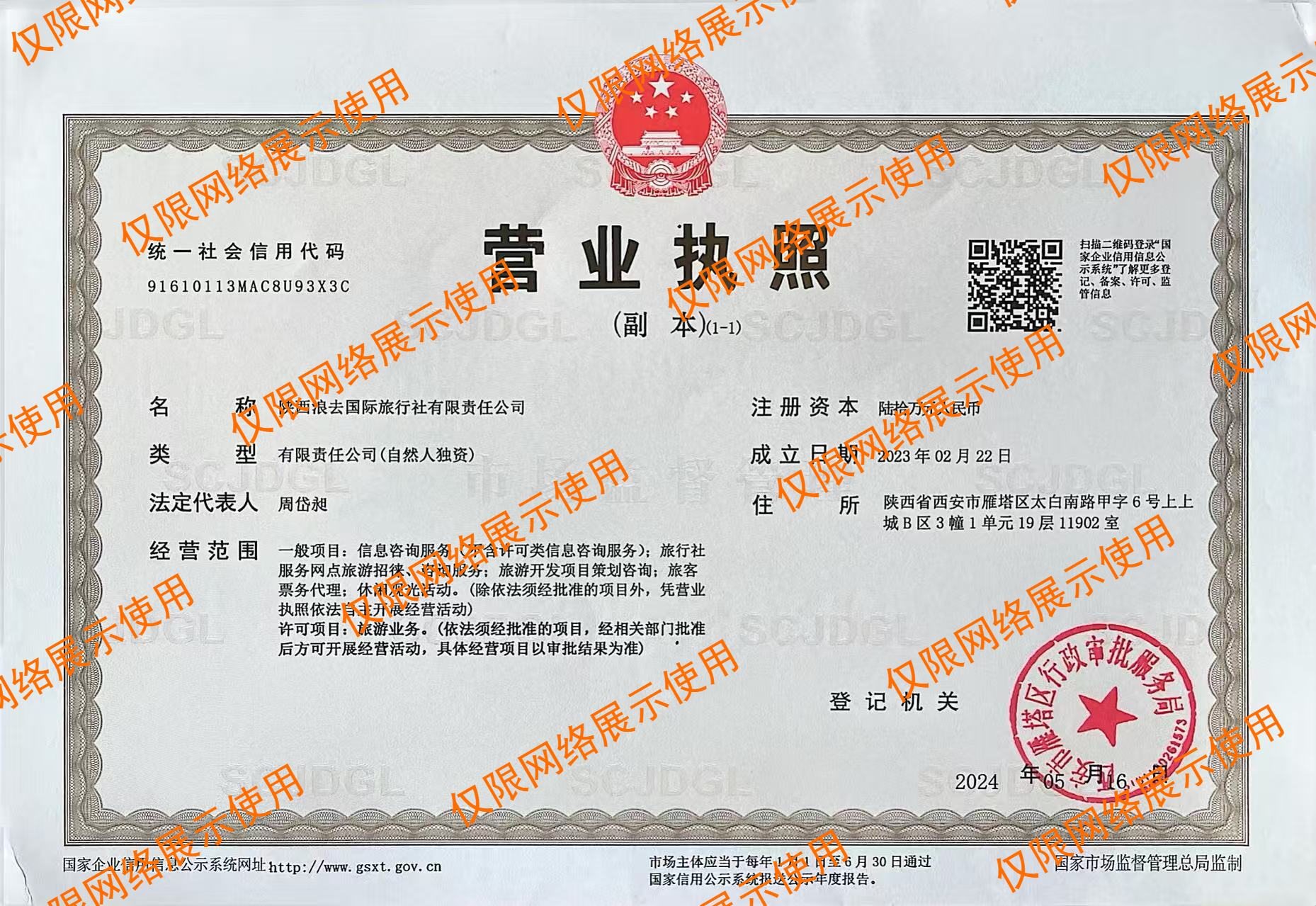 陕西浪去国际旅行社有限责任公司是领袖户外独资的旅行社,拥有完整的旅行社资质,请放心参团。